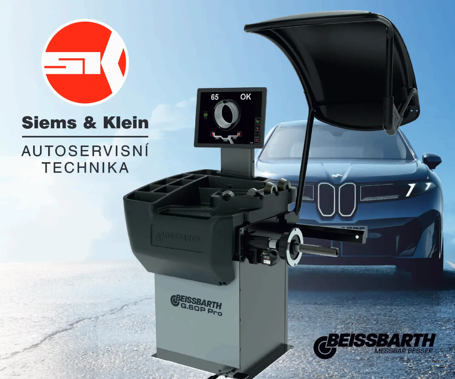 Prémiová vyvažovačka Beissbarth G.60P Pro BMW | Diagnostic v atraktivním šedočerném provedení a se schválením pro značkové servisy BMW je zajímavým rozšířením sortimentu pneuservisního vybavení od společnosti Siems & Klein. Mezi hlavní výhody osvědčené vyvažovačky G.60 ve verzi pro BMW patří diagnostické funkce vč. automatického měření výškové odchylky či efektivní eliminace vibrací i bez nutnosti drahého válce.