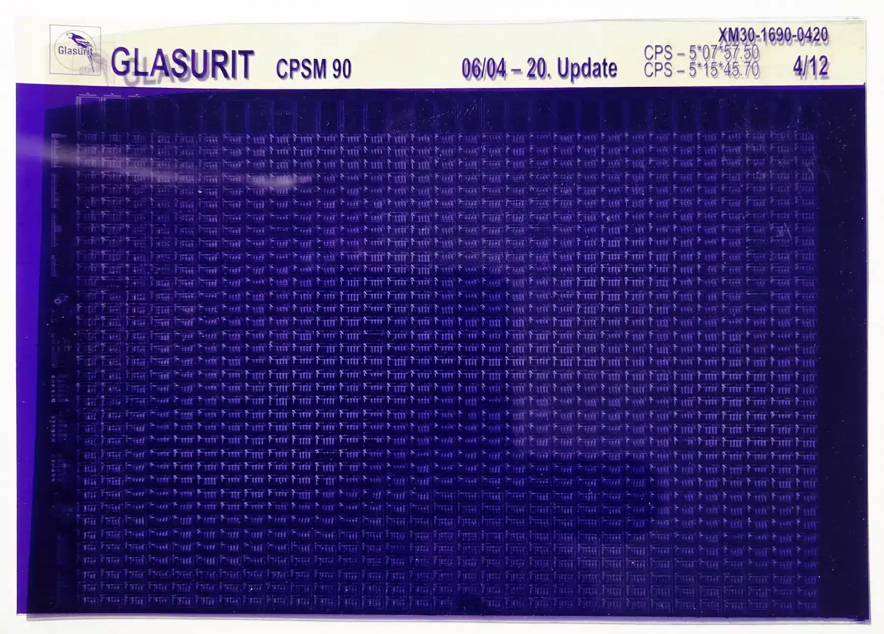 Dále přišla 90. léta, otevřely se hranice a s tím se přešlo na západní technologie. Lakovny se začaly vybavovat míchacími zařízeními, váhami a čtecími zařízeními (obr. 1), kde byly na mikrofiších (obr. 2) receptury na 0,3; 0,5; 1 a 2 litry. Když se na váze přelilo, barva se musela vylít. Barva byla ve třech cenových skupinách a nebyla uvedena přesná cena za litr. Byl to pokrok, ale vývoj šel neustále dopředu. V lakovně se doporučovalo to, co bylo potřeba, a ne jako dnes to, čeho jsou plné sklady (nabídky a akce).