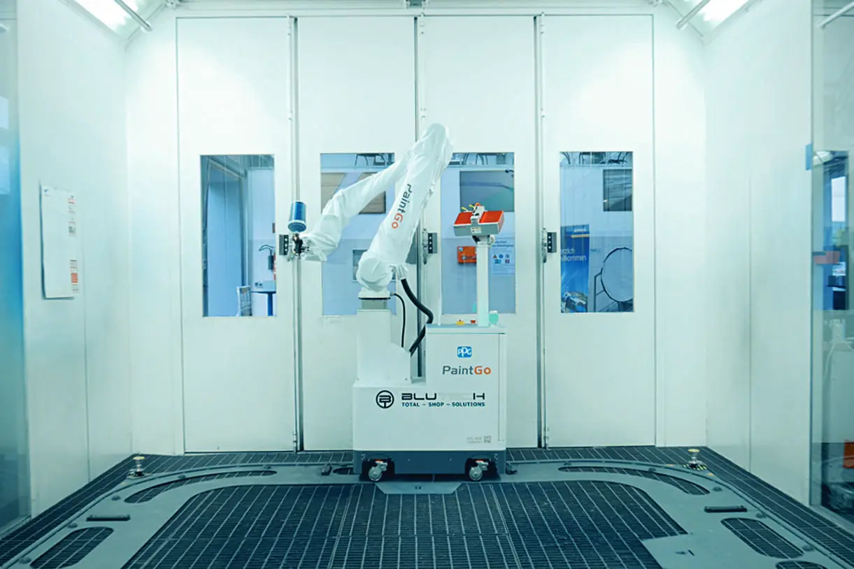 Konkrétně máme na mysli lakování automobilů. Roger Blum, majitel a generální ředitel švýcarské společnosti Blutech AG, odhaduje: „Na veletrhu Automechanika 2026 ve Frankfurtu budeme moci vidět pět nebo šest robotických systémů pro lakování automobilů.“ Samotná společnost Blutech AG distribuuje robota PaintGo od čínského výrobce Onew. Čínská společnost používá tzv. kobota v lakování již pět let. Říká se mu kobot, protože je schopen pracovat po boku lidí v lakovací kabině. Je tedy zajištěno, že stroj nezraní lidi – na rozdíl od konvenčních robotů, kteří obvykle musí pracovat v kleci a vypnout se, když do ní člověk vstoupí.