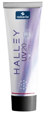 Dalším krokem procesu je aplikace jednosložkového UV plniče Halley UV200 (obr. 2), který byl vyvinut pro rychlé opravy v lakovně. Produkt využívá technologii Blutech a umožňuje velmi rychlé vytvrzení pomocí UV záření. Po vytvrzení UV lampou, které trvá rovněž 30 sekund, můžete místo ihned obrousit a díl je tak v krátkém čase připraven k dalšímu kroku – aplikaci podkladové nebo vrchní barvy. Díky tomu lze výrazně zkrátit dobu mezi aplikací plniče a následným lakováním.